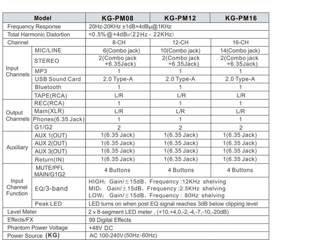 KG-PM08 ΚΟΝΣΟΛΑ ΗΧΟΥ 8 ΚΑΝΑΛΙΩΝ