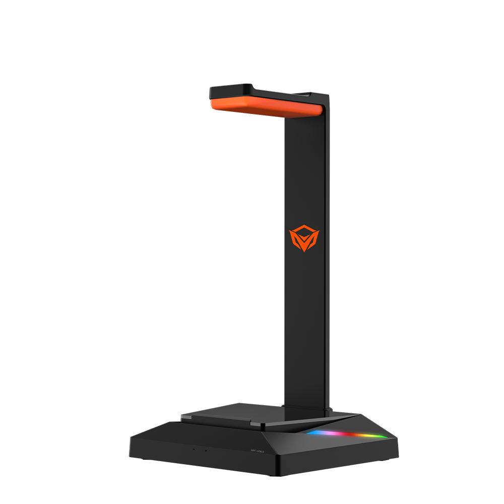 STAND FOR GAMING HEADSET U003 is a gaming headset desktop stand, the stand has an LED backlight design, the base can be placed on any size mobile phone, perfectly matching your gaming keyboard and mouse, highlighting the atmosphere, allowing you to be in a colorful world, providing an immersive experience user experience. The stand has USB and Type-C interfaces to provide power for other devices, USB power supply, plug and play, no driver required. The headphone stand can be removed, making it easy to carry. The durable base of the gaming headset stand adds weight and a non-slip grip for optimal stability even during intense gaming sessions. Keep your headphones safe at all times. LED backlight Equipped with LED background lights to highlight the atmosphere and put you in a colorful world for an immersive experience. Perfect Desk Accessory The durable base with added weight and non-slip grips of the gaming headset stand provide optimum stability even during intense gaming, keeping your headphones safe at all times. USB/Type-C output ports Charge your phone, tablet, wireless headphones and other USB charging devices. Humanized design The base surface is designed with a device that can place a mobile phone, which can effectively help you free up more desktop space. LED backlit Equipped with LED background lights to highlight the atmosphere and put you in a colorful world for an immersive experience. Detachable The headphone stand can be disassembled, easy to install and easy to carry.