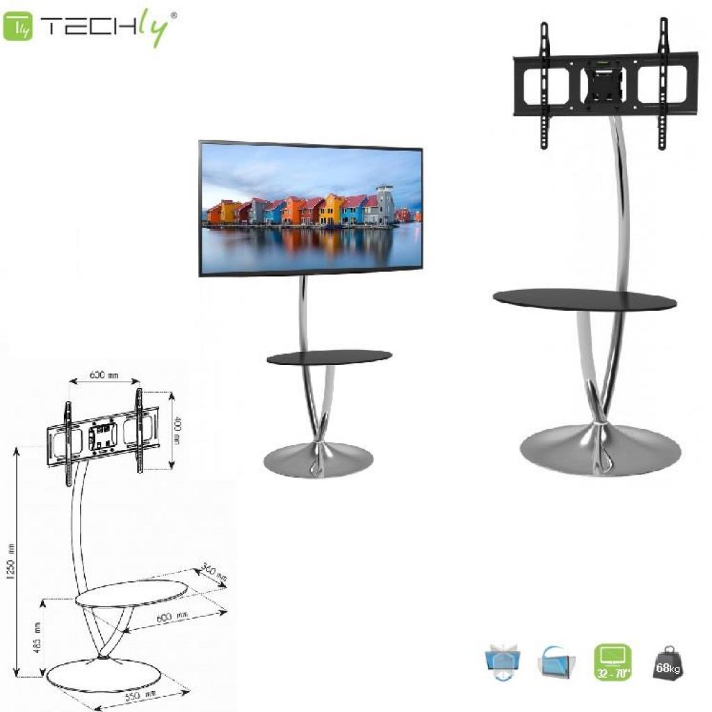 • Στερεά στρογγυλή βάση (διάμετρος: 550mm) και ράφι από γυαλί για εξαρτήματα ήχου βίντεο (600x360 mm), στήλη συνολικού ύψους 1250 mm