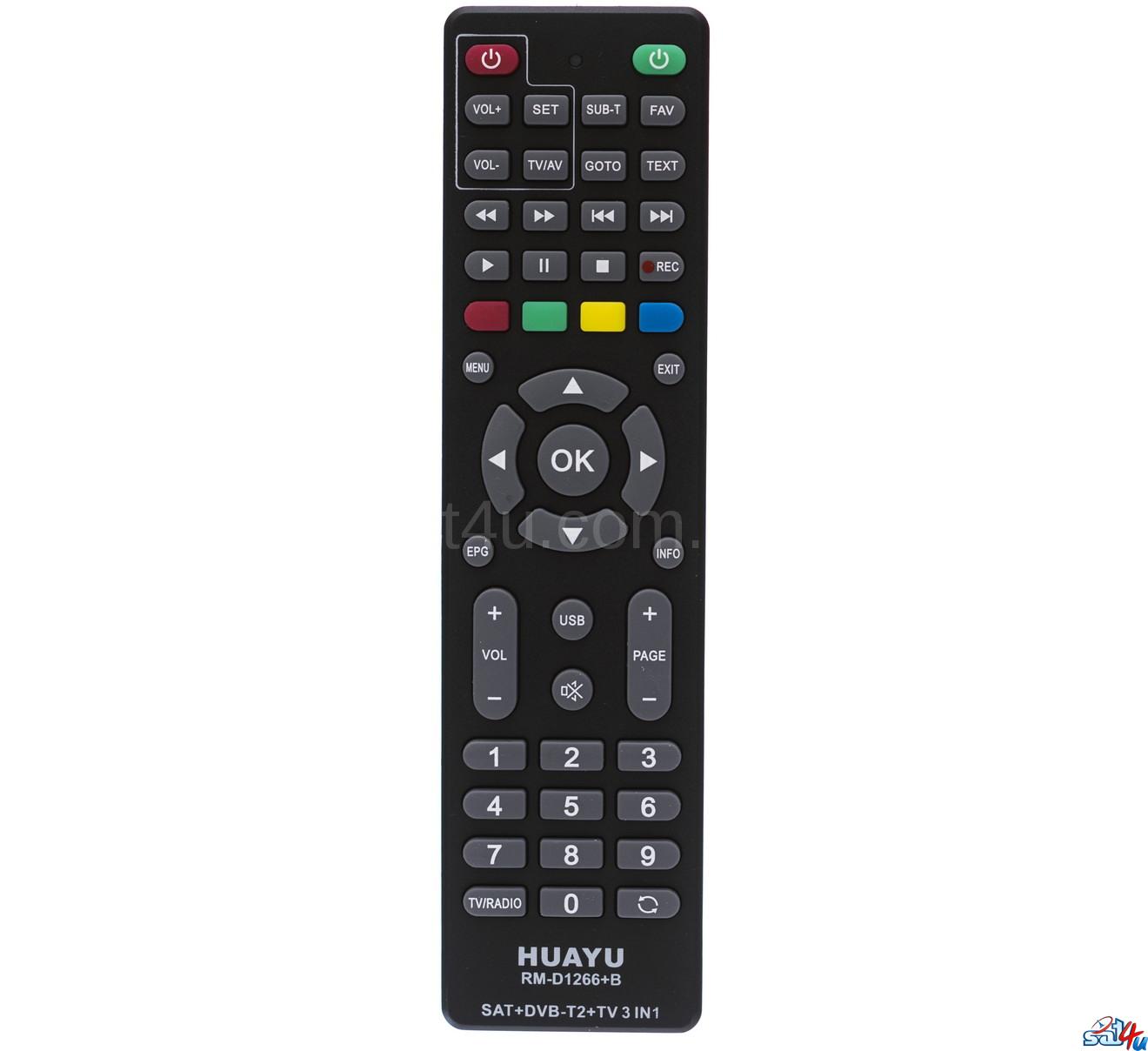 RM-D1266+B ΠΟΛΥΤΗΛΕΧΕΙΡΙΣΤΗΡΙΟ for DVB-TV Πολυτηλεχειριστήριο για τηλεόραση,δορυφορικό ή επίγειο δέκτη με πολύ απλή εγκατάσταση.Σε πολλές περιπτώσεις μπορεί και να μην χρειαστεί καθόλου να το εγκαταστήσετε.Πολύ εύκολο στην χρήση με ακτίνα λειτουργίας έως 8-10 μέτρα(δαφέρει αναλόγως της εταιρείας της τηλεόρασης ή του δέκτη).Δέχεται 2 μπαταρίες ΑΑΑ. Θα βρείτε τις οδηγίες χρήσης του χειριστηρίου στα ελληνικά στον σύνδεσμο που ακολουθεί: HUAYU RM-D1266 οπισθόφυλλο