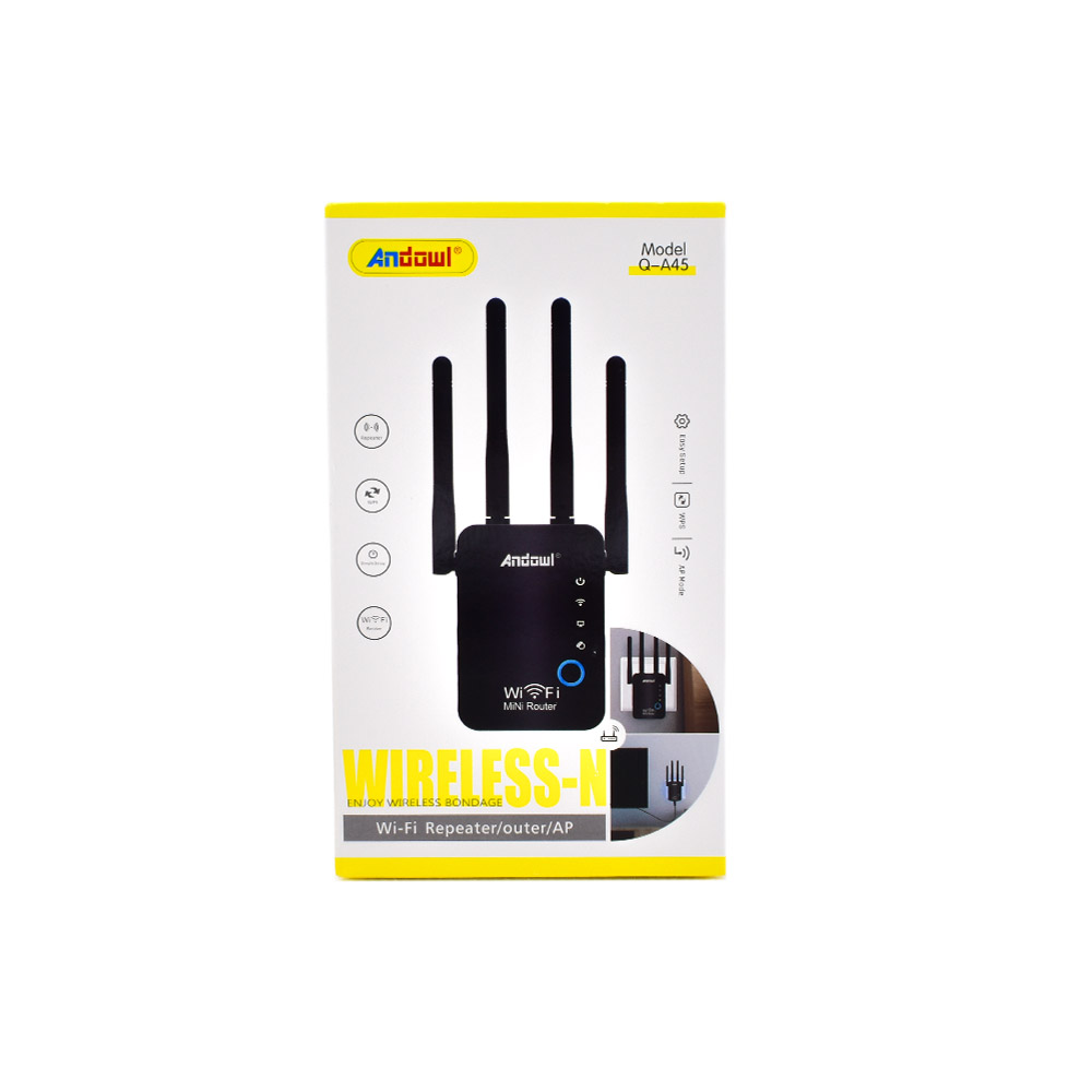 Ασύρματο mini router/repeater/AP Wi-Fi-N 2.4GHz 300Mbps μαύρο Q-A45 Andowl